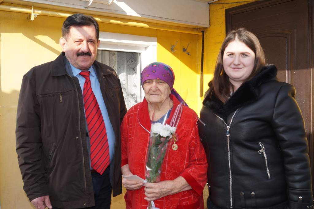 Вместе с председателем Думы ветеранов поздравила специалист по социальной работе МБУ ЦСО Анастасия Цыганкова.