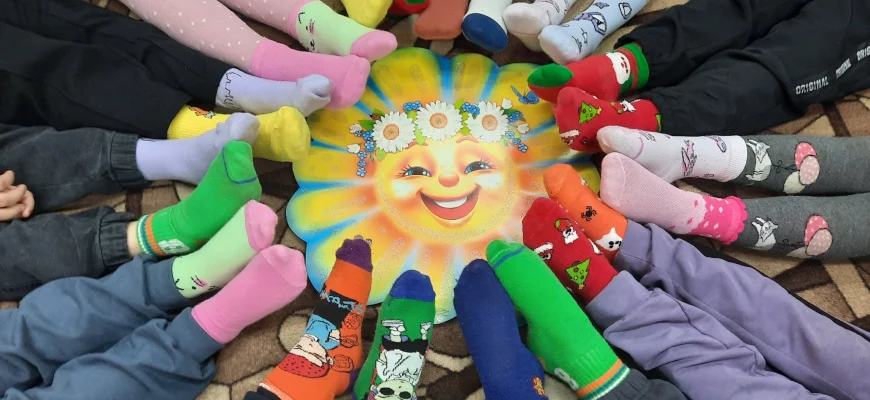 В детском саду “Журавушка” прошла акция “Разноцветные носки”, в ней приняли участие воспитанники всех групп. Ребята надели разнопарые цветные носки, чтобы на один день побыть немного особенными и выразить свою солидарность и поддержку другим людям “солнечным”. Воспитанники нашего детского сада играли в игры “Найди пару носочку”, “Разложи носочки по величине”. В этот день особенный мы говорили об особенных детях , много улыбались. Впечатление от прошедшего , не пройдет даром, а останется в наших сердцах.