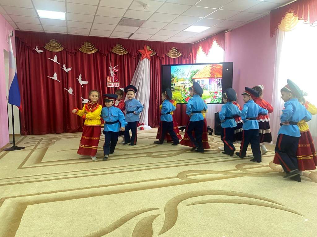 Танец в исполнении ребят группы «Непоседы» под мелодию «Майский вальс» окунул всех присутствующих в победный май 45 года. Ярким был казачий танец «На горке калина», весёлым и задорным танец «Матрешки», который исполнили малыши группы «Акварельки». Педагоги посетили мастер – класс «Корзина Добра» (по изготовлению талисманов для участников СВО), спортивно – патриотические игры «Сильные дети своей отчизны», ООД «Блокадный хлеб».