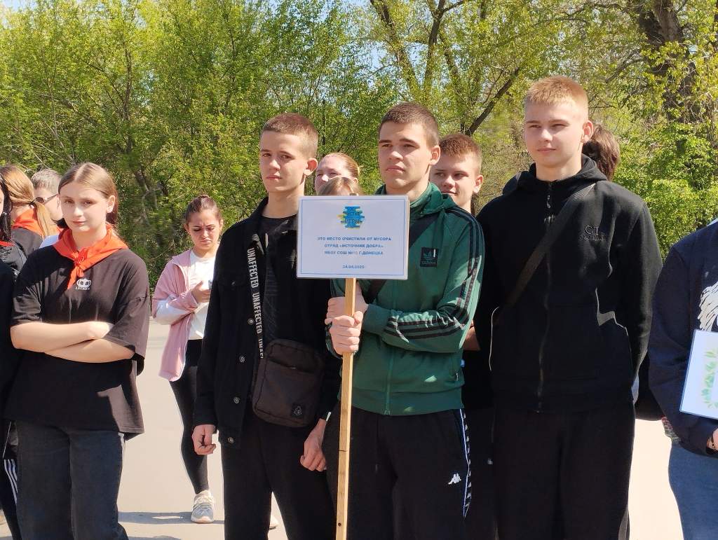 Сегодня, 24 апреля, на берегу реки Северский Донец (в районе парома) прошел масштабный субботник, участие в котором приняли все школы города, а также — студенты донецкого донецкого института (ИУБиП), донецкого техникума и училища 50.