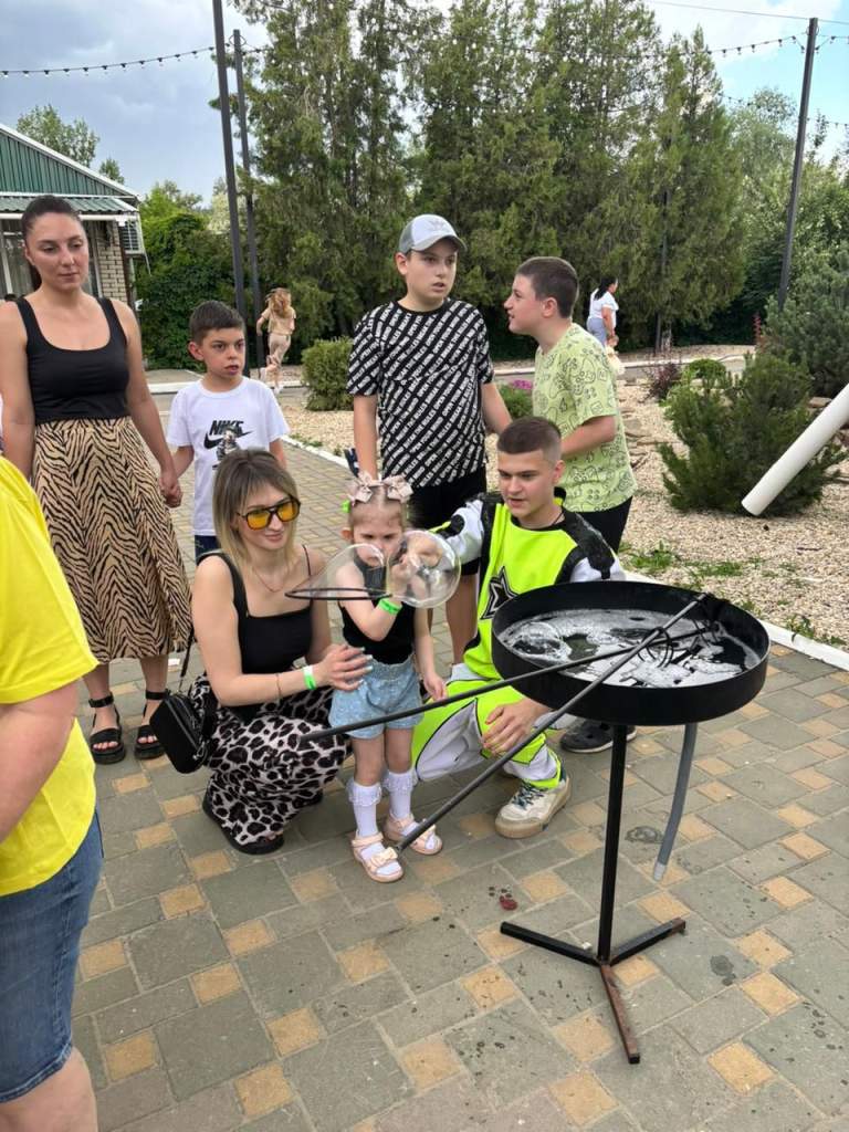 Воспитанники «Центра социальной помощи семье и детям» г. Донецка и ГКУСО РО «Донецкого центра помощи детям», а также члены семей участников СВО приняли участие в конкурсах и развлечениях от Академии отличного настроения «Кофеин». Гигантские мыльные пузыри, ледяное шоу, жаркие танцы, костюмированное представление и яркая фотосессия — это лишь часть развлечений, подготовленных для гостей праздника.