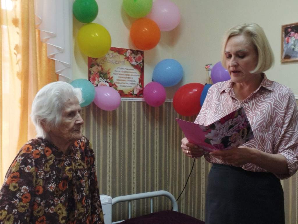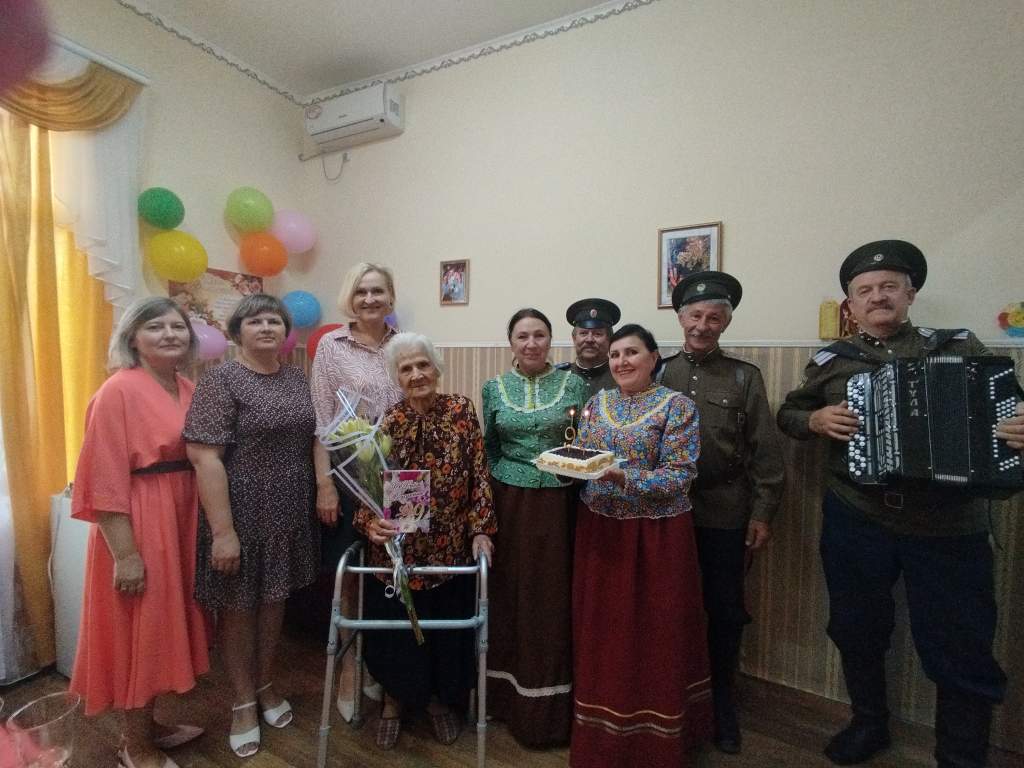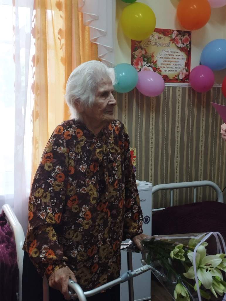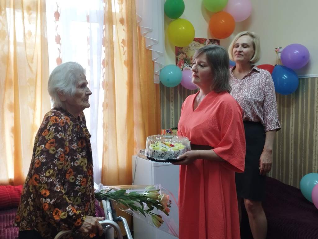 Сегодня весь день наша заслуженная дончанка принимала поздравления – от администрации города и Донецкой городской Думы, от Управления социальной защиты населения, от воспитанников детских садов “Лазорик” и “Соловушка”, от Центра социального обслуживания, в котором она проживает.