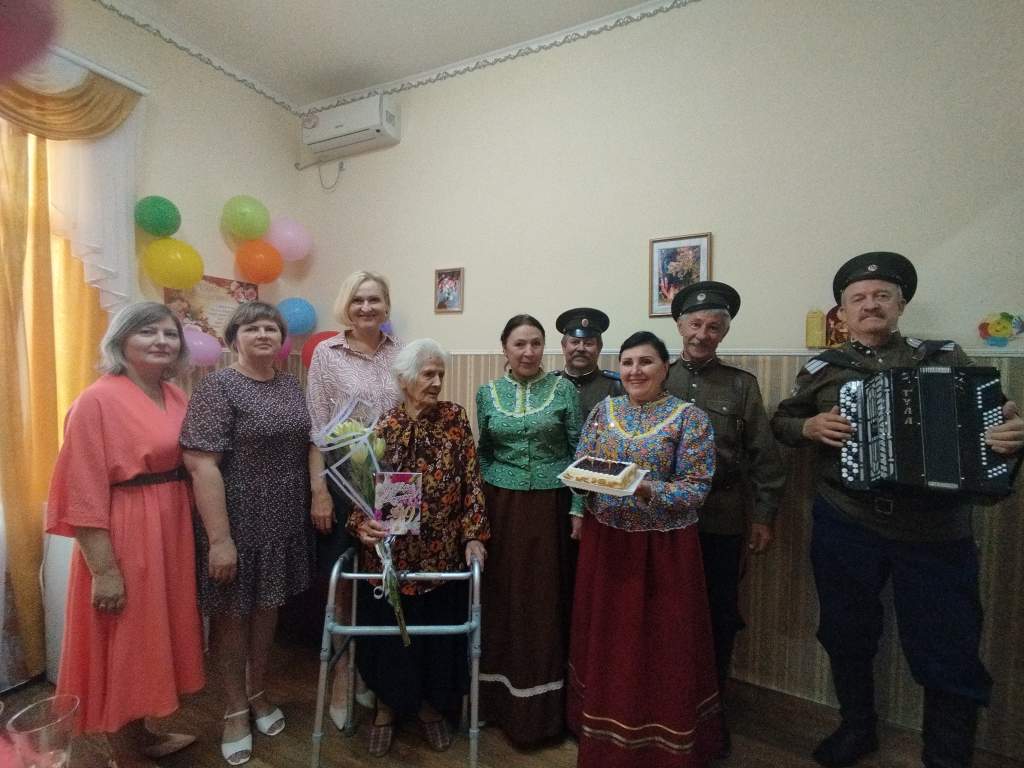 Особенно теплые слова прозвучали от первого заместителя главы администрации Оксаны Забабуриной, ярким музыкальным сюрпризом стали казачьи песни в исполнении народного вокального коллектива “Станичники”, руководитель Лидия Коваленко.