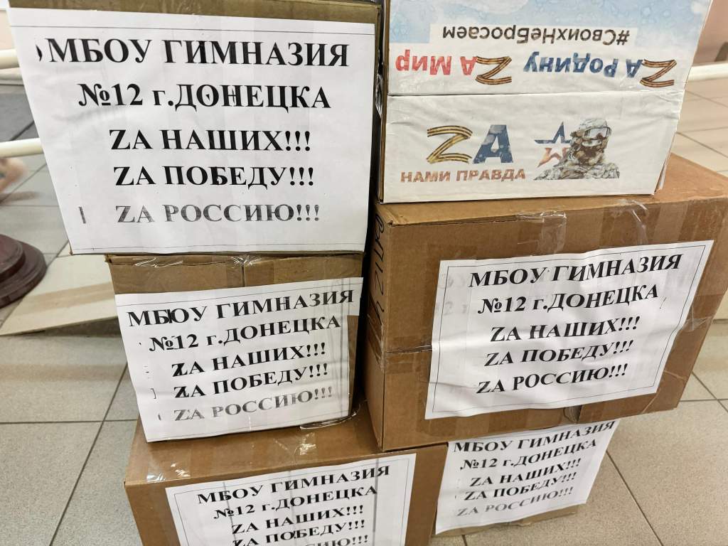 Воспитанники пришкольного оздоровительного лагеря “Улыбка” МБОУ гимназии 12 г. Донецка совместно с жителями г. Казани и народной гуманитарной группой «Обозник», а также жителями г. Донецка РО. собрали необходимые медикаменты, а также влажные салфетки , сухой душ и конечно же письма, и талисманы для наших солдат.