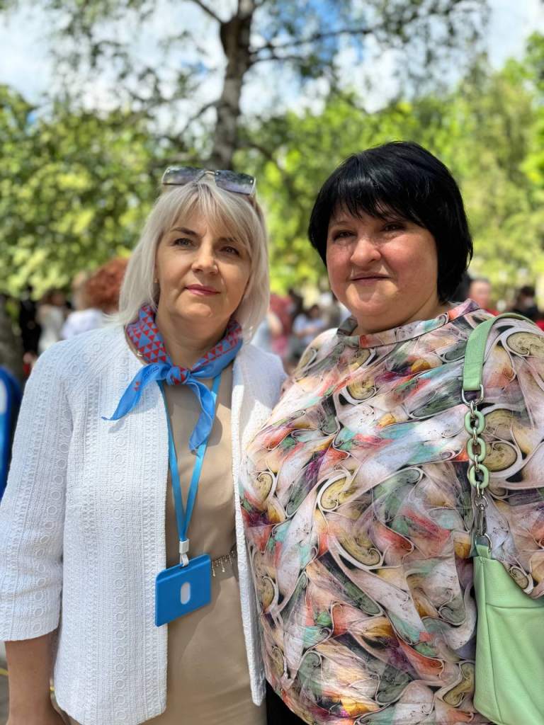 С наступающим праздником всех поздравили руководитель отдела культуры и спорта Администрации Донецка Светлана Служенко, депутат Донецкой городской Думы от партии Единая Россия, социальный координатор фонда Защитники Отечества Елена Коробейникова, директор Дома детского творчества Татьяна Гуцу.