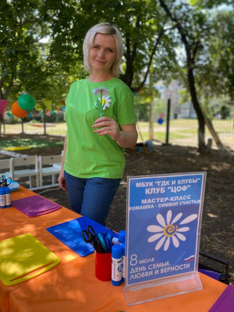 А самое интересное занятие, которое увлекло детей и родителей – это мастер-класс от сотрудников клуба “ЦОФ” по изготовлению символа праздника – ромашки. Дети верят, что ромашка волшебная и будет исполнять желания!