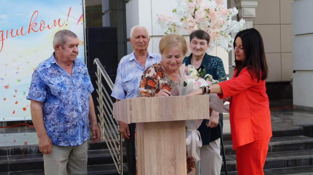 Начальник отдела ЗАГС Администрации г. Донецка Ростовской области Оксана Николаевна Алексеева поздравила всех с Днем семьи и попросила «золотых» юбиляров расписаться в книге для юбиляров семейной жизни Донецка.