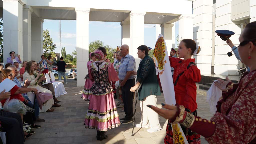 По казачьему обряду, который провели артисты муниципального ансамбля песни и танца “Казачья воля” (руководитель Галина Дегтярева) семейные пары прошли через врата семейной защиты, мудрости и благоденствия!