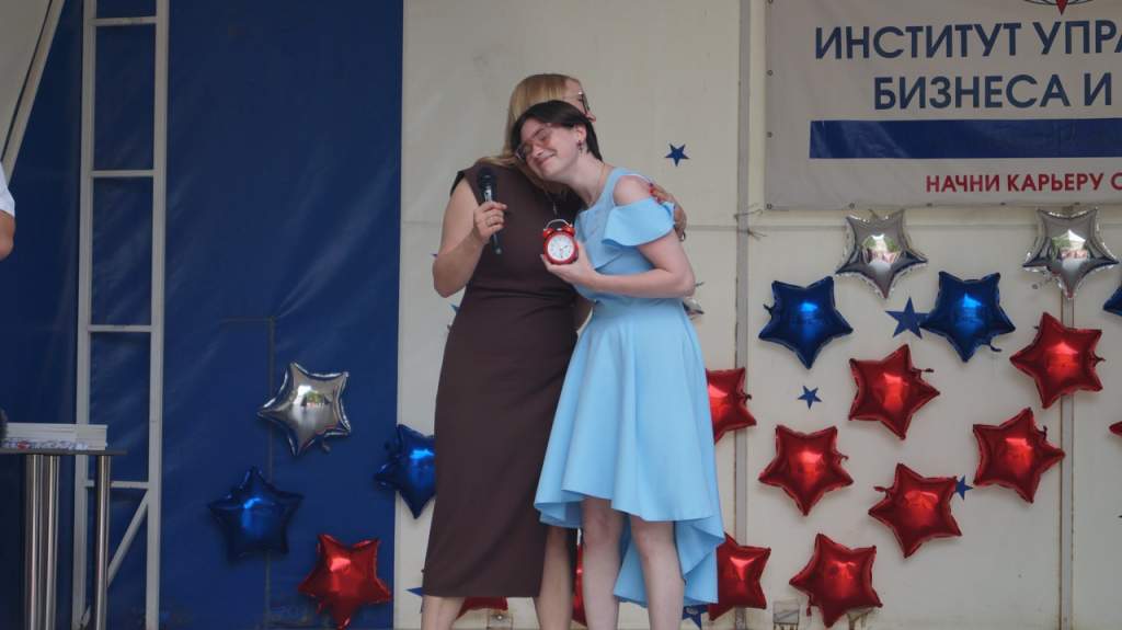 Заместитель директора по учебно-методической работе Яна Валерьевна Батищева вручила особый подарок Валентине Хапричковой: «Все мы знаем, что для студентов одна из самых сложных задач – это вставать рано утром. Каждый год находится тот, кому эта задача даётся труднее, чем остальным. Пусть этот подарок не только поможет просыпаться вовремя, но и станет символом успеха и достижения тех целей, которые ставишь перед собой!»