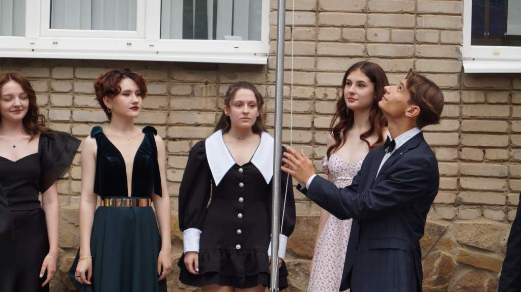 Мероприятие началось с Гимна России и поднятия флага института. Почетное право поднять флаг института предоставили выпускникам, окончившим обучение с отличием.