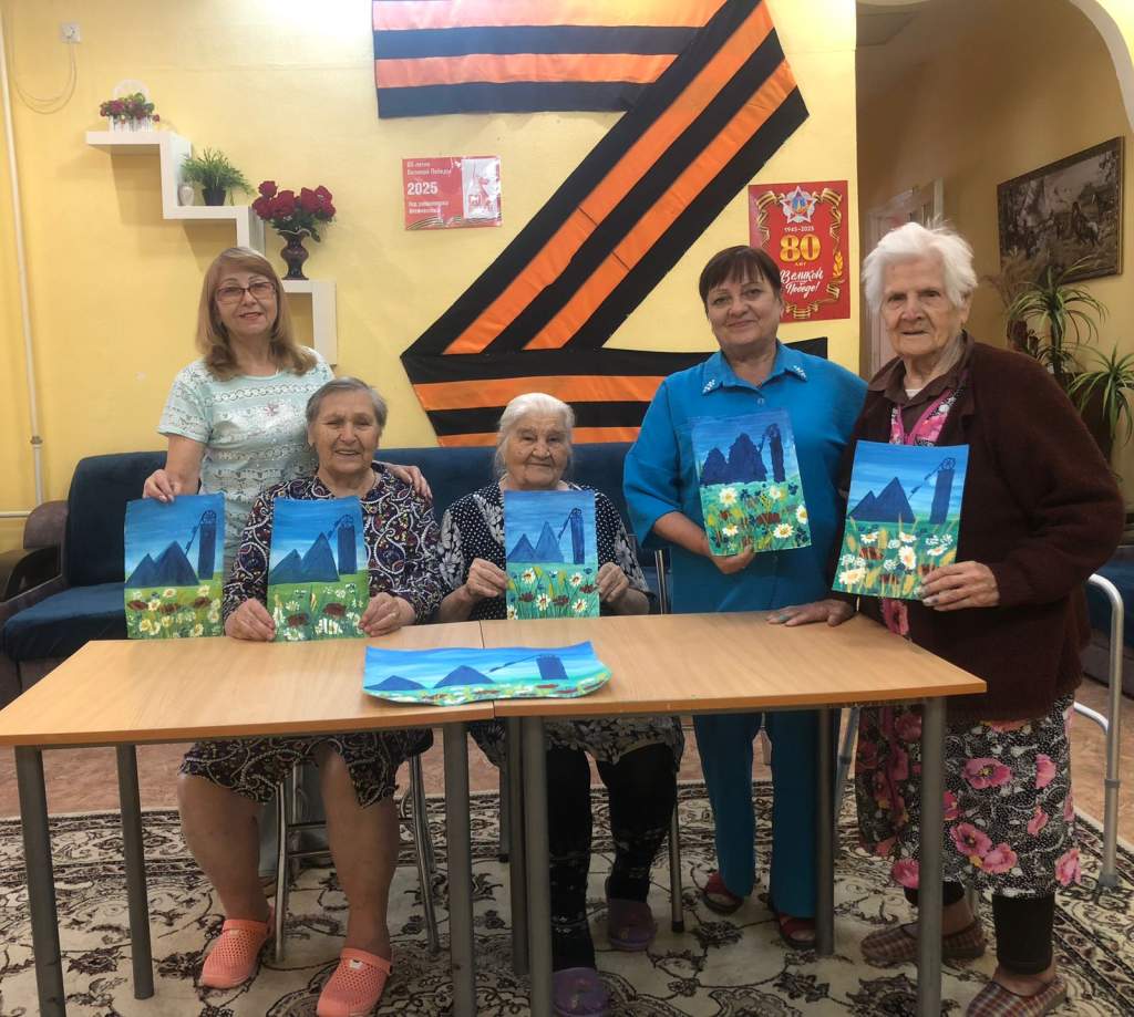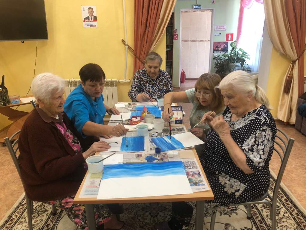Активный “Серебряный волонтер” Надежда Орлова со своими помощниками по группе, провела урок живописи для ветеранов, проживающих в Центре Социального обслуживания. С большим удовольствием азам живописи училась ветеран Великой Отечественной войны Любовь Семеновна Новикова.