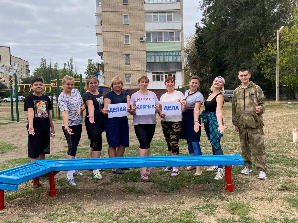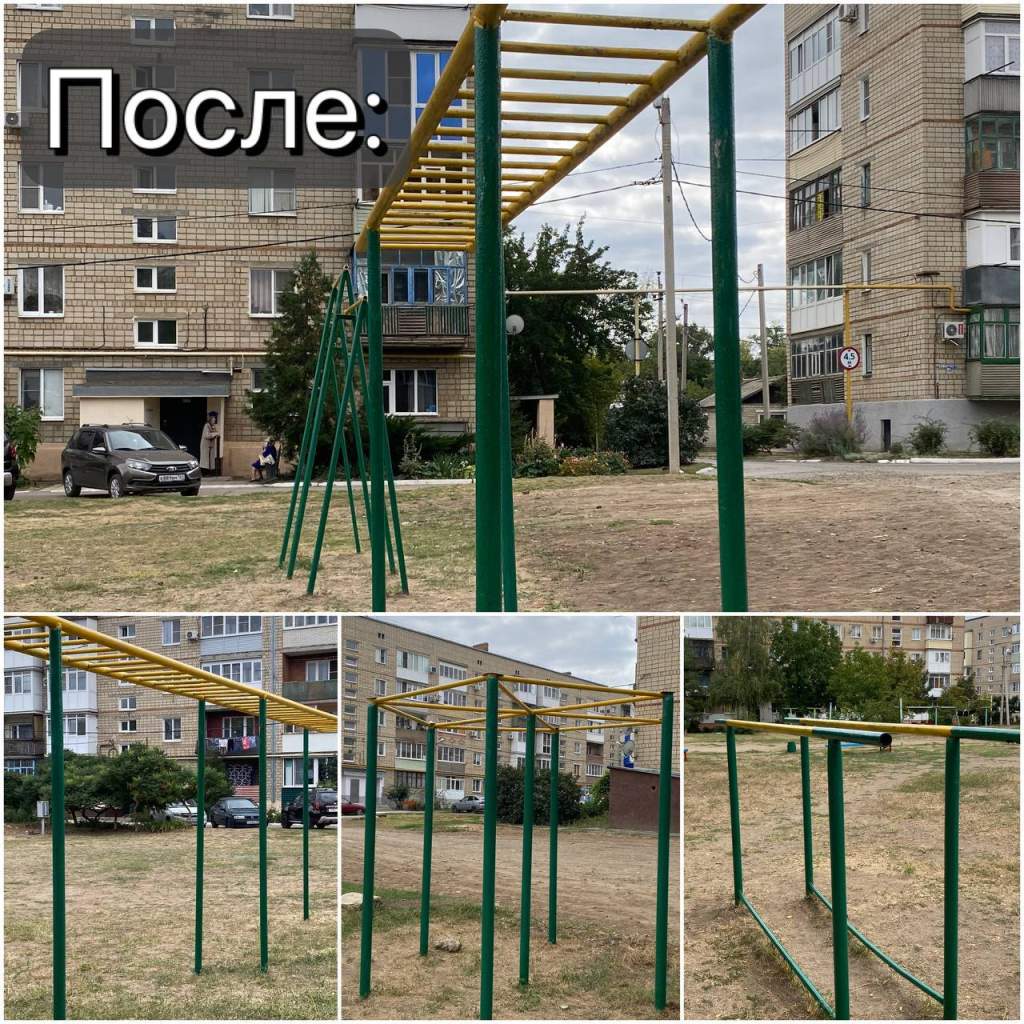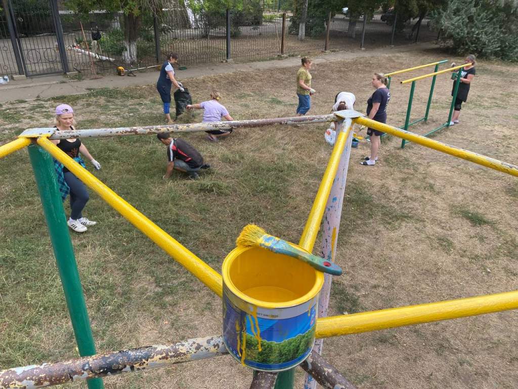 5 сентября, начиная с раннего утра, в 16 квартале на площадке между домами 6, 7, 8 и 9 собрались работники МБДОУ д/с 15, сотрудники клуба «ЦОФ» и ученики МБОУ СОШ №3 с целью уборки территории, покраски лавочек, спортинвентаря и турников на дворовой площадке, где проводят досуг взрослые и дети. Вооружившись кисточками, краской и рабочим инвентарем все участники акции, под музыкальное сопровождение, приступили к активной работе.