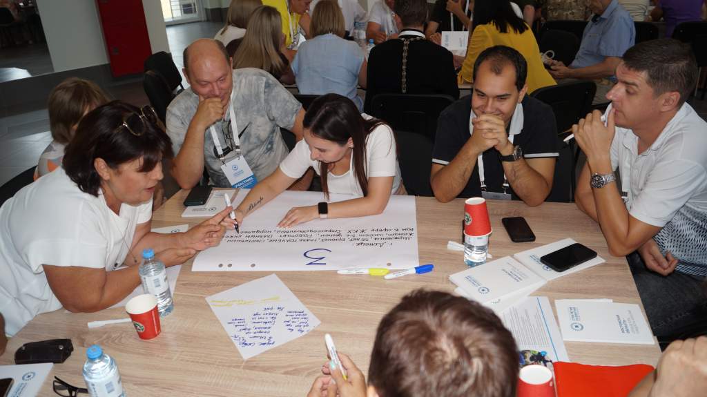 Участники были поделены на команды, так называемые тематические столы, у каждого из которых были свои направления — экономика, экология, инфраструктура, развитие личности, здоровье, цифровизация. Сессия прошла в формате дискуссий, разработки и защиты проектов, квиза (командной интеллектуальной игры) и других взаимодействий. Отметим, что участники — люди в городе известные, занятые в разных сферах, поэтому многие идеи были новаторскими и достаточно амбициозными.