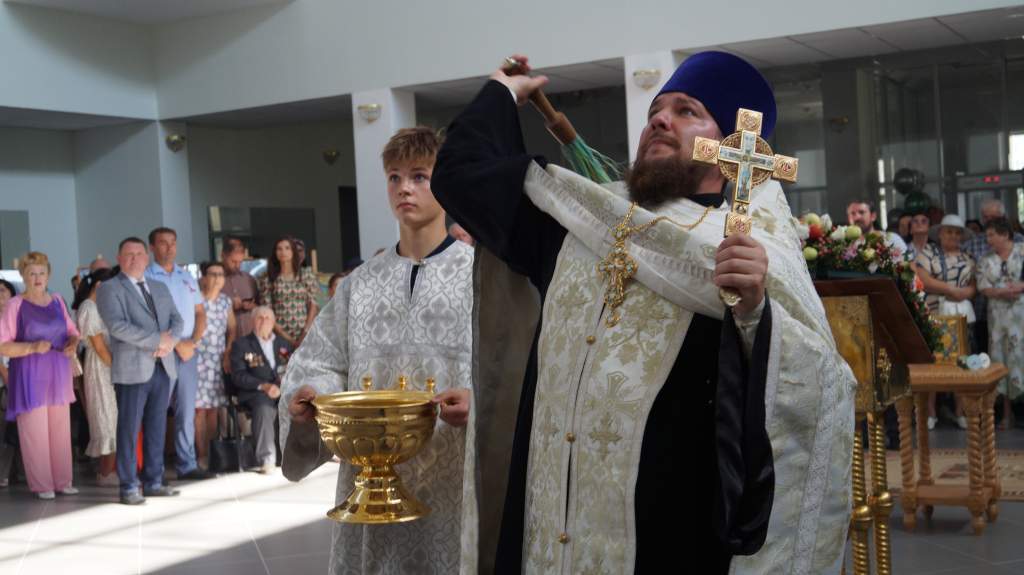 Настоятель храма Державной иконы Божией Матери, иерей Владимир Татаркин провел обряд освящения здания, пожелав всем многих лет творческой жизни.