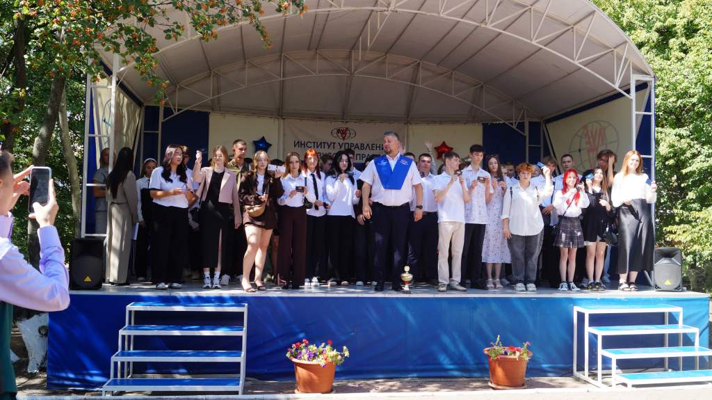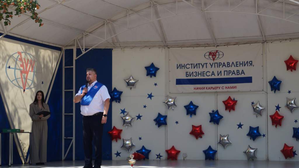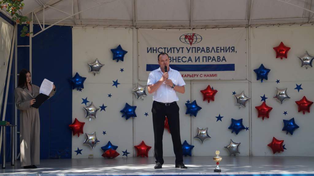Мероприятие началось с гимна Российской Федерации и поднятия государственного флага. С поздравлениями ко всему коллективу и студентам обратился директор института Денис Батищев.