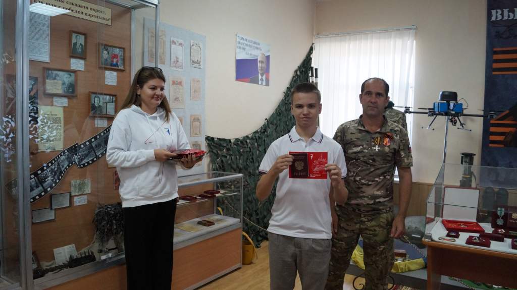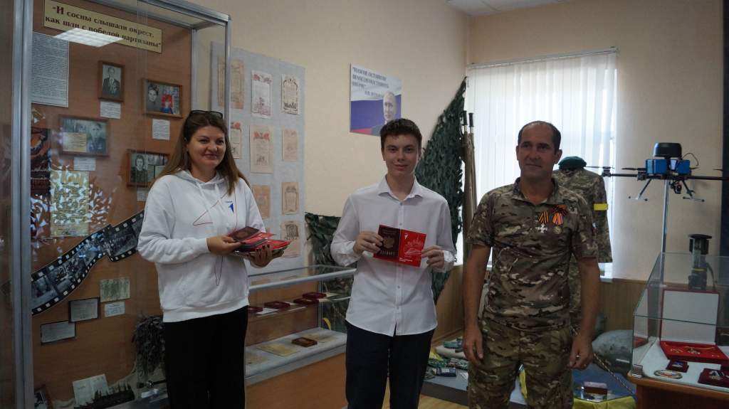 Ребятам выпала честь получить первый паспорт из рук Почетного гостя – участника СВО, награжденного медалью “За освобождение Донбасса” и знаком отличия ордена Святого Георгия – Георгиевским крестом IV степени Юрия Друка. Он и руководитель Донецкого отделения Движения Первых Ольга Котрецкая поздравили ребят с получение самого важного документа, пожелав, чтобы они внесли достойный вклад в будущее России!