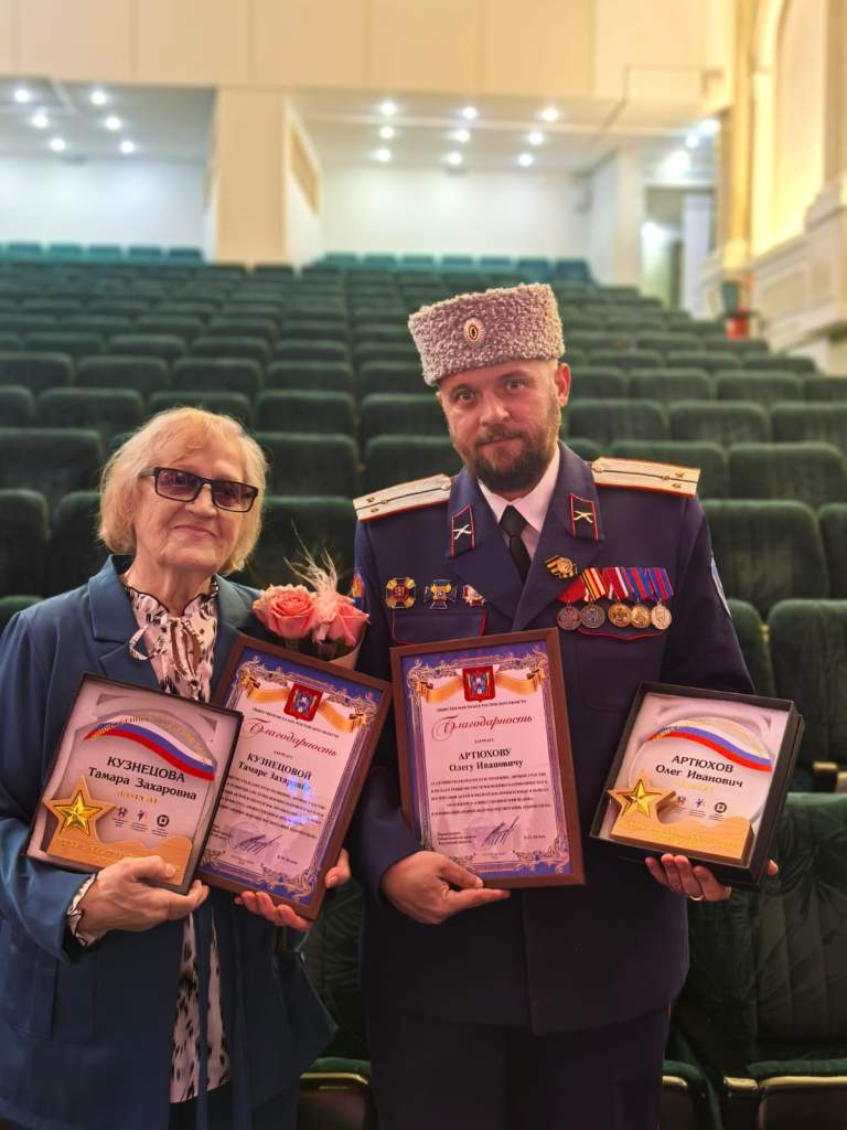 В рамках церемонии состоялся специальный показ фильма «Герои. Всегда. Рядом» о лауреатах конкурса.Поощрительные персональные знаки и благодарственные письма от Общественной палаты региона получили и дончане – лауреаты премии «Общественное признание». Это герой СВО, депутат Донецкой городской Думы, атаман ГКО “Гундоровское” Олег Артюхов и руководитель “Территории добра”, председатель Общественного совета при администрации Донецка Тамара Кузнецова.