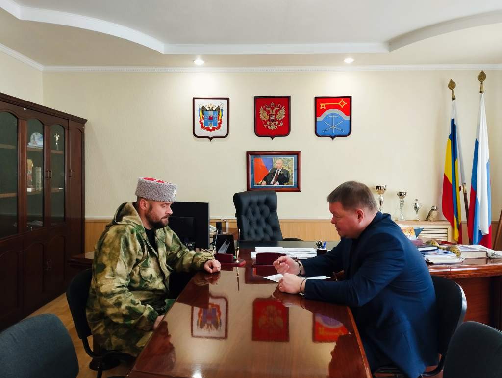 Провел рабочую встречу с атаманом городского казачьего общества «Гундоровское» Олегом Ивановичем Артюховым. Обсудили вопросы сотрудничества администрации города и казачьего общества, тему патриотического воспитания молодежи, развитие хозяйственной деятельности ГКО “Гундоровское”. Поблагодарил казаков за активную совместную работу, за содействие в воспитании подрастающего поколения.