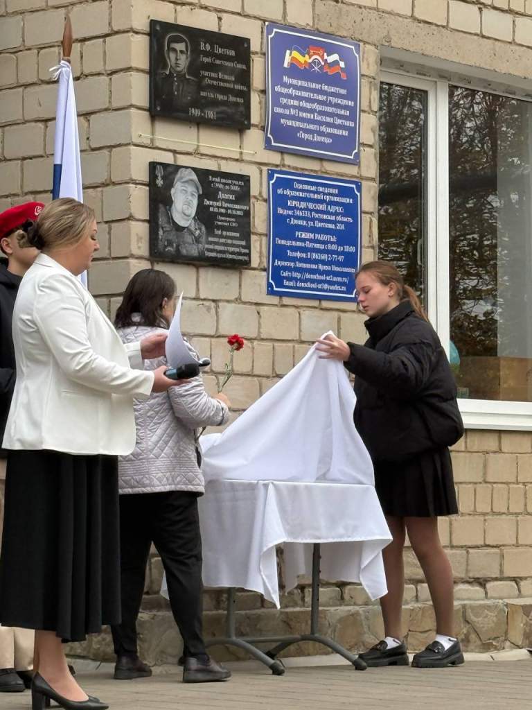 9 октября сотрудники клуба «ЦОФ» совместно с педагогами МБОУ СОШ №3 организовали торжественное открытие мемориальной доски в честь выпускника школы – Долгих Дмитрия Вячеславовича. Наш земляк, командир взвода 1 отделения мотострелкового взвода – 3 мотострелковой роты, 3 мотострелковой бригады, 6-ой общевойской армии западного военного округа Дмитрий Долгих указом президента России награждён орденом Мужества (посмертно), за отвагу и героизм, проявленные в боях в Харьковской области. На мероприятии присутствовали сотрудники правоохранительных органов, семья героя, ученики и педагоги школы, а так же социальный координатор филиала-фонда «Защитники Отечества» по Ростовской области в городе Донецке и в Каменском районе Елена Коробейникова .