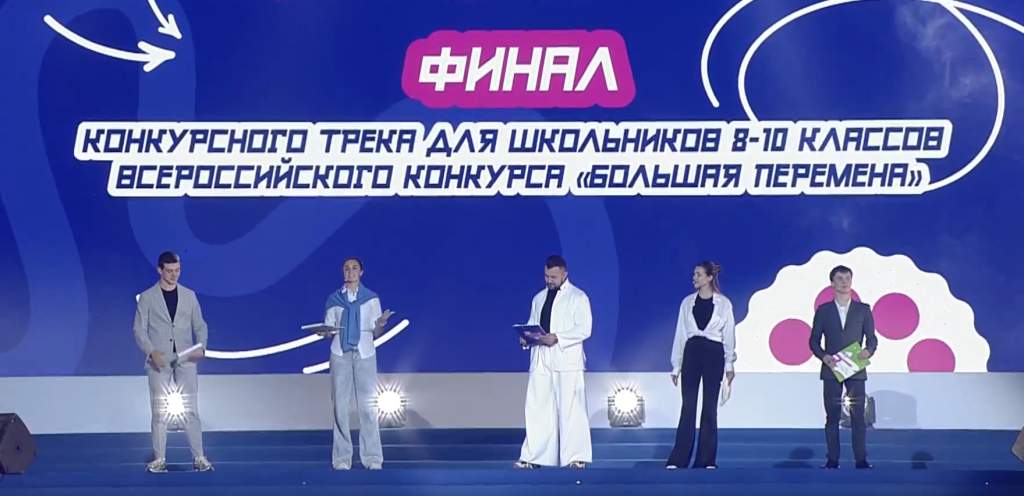 Финал проходил в Артеке, где собрались 1500 участников из 79 регионов России. 5 ноября были названы имена победителей и лауреатов. Лауреатами конкурса «Большая перемена» для учащихся 8–10 классов стали 300 школьников со всей России.
