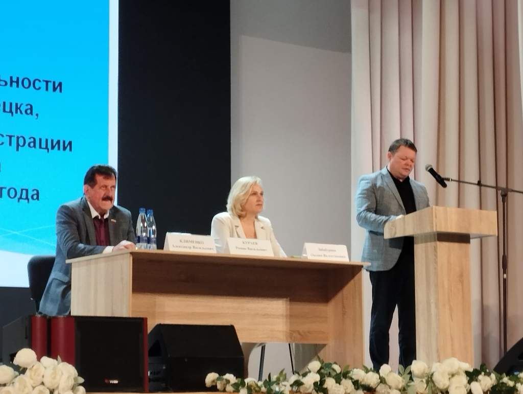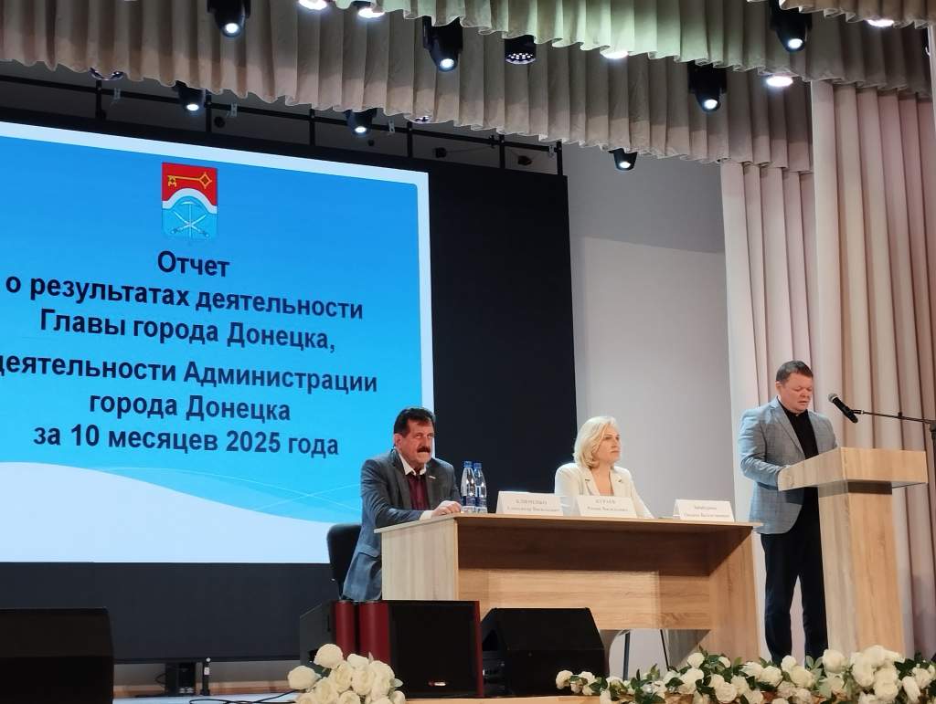 Глава города выступил с отчётом о работе, проделанной в 2025 году, затем жители Донецка задали интересующие их вопросы, которые, в основном касались ремонта дорог на конкретных улицах, ликвидации стихийных свалок, устройства тротуаров.