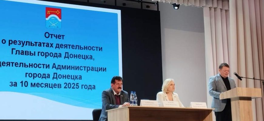 Глава города выступил с отчётом о работе, проделанной в 2025 году, затем жители Донецка задали интересующие их вопросы, которые, в основном касались ремонта дорог на конкретных улицах, ликвидации стихийных свалок, устройства тротуаров.