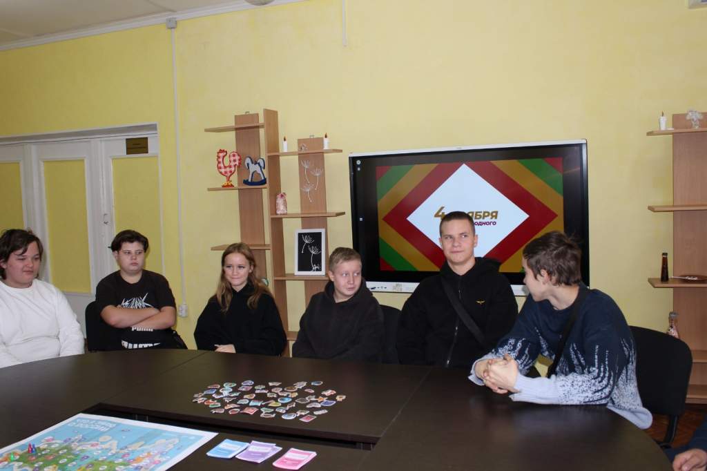 Ко Дню Народного единства специалисты отделения профилактики безнадзорности несовершеннолетних и психолого-педагогический помощи ГБУСОН РО “ЦСПСД г. Донецка” провели настольную игру «Что я знаю о России?». Для этого понадобилось игровое поле, карточки с заданиями, кубик и фишки.