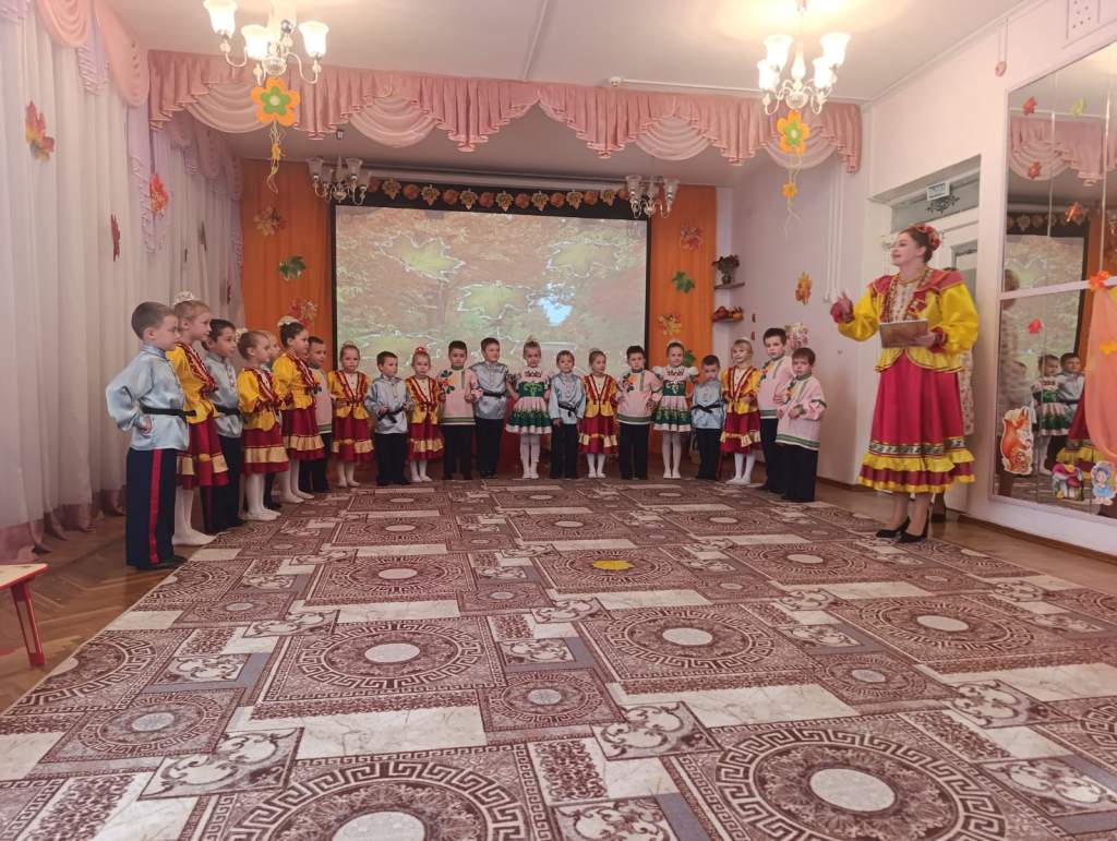 Воспитанники подготовительной группы, облаченные в яркие народные костюмы, с гордостью демонстрировали свои знания и умения. Они пели задорные казачьи песни, рассказывали стихи о щедрой осени и её дарах, исполняли зажигательные танцы, которые заставляли зрителей притопывать в такт. Особое внимание было уделено традиционным казачьим играм и забавам, которые не только развлекали детей, но и воспитывали в них ловкость, смекалку и командный дух.Гости с неподдельным интересом наблюдали за выступлением детей, их глаза светились теплотой и гордостью. Юлия Александровна, отметила высокий уровень подготовки воспитанников и профессионализм педагогов, которые сумели так глубоко погрузить малышей в мир казачьей культуры.