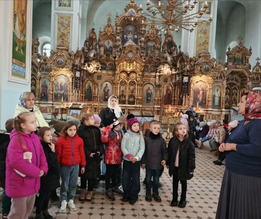 У дверей храма дошкольников радушно встретила педагог воскресной школы Зоя Александровна Артюшенко. Зоя Александровна рассказала ребятам об истории храма, иконах, житии святых, алтаре, Библии, царских вратах, ведущих к алтарю и многое другое. Показала, как правильно креститься. Ребята получили представление о форме одежды, приемлемой для посещения православного храма, познакомились с правилами поведения, узнали о том, что в храме необходимо соблюдать тишину, дисциплину и порядок, а к святыням нужно относиться с чувством благоговения.