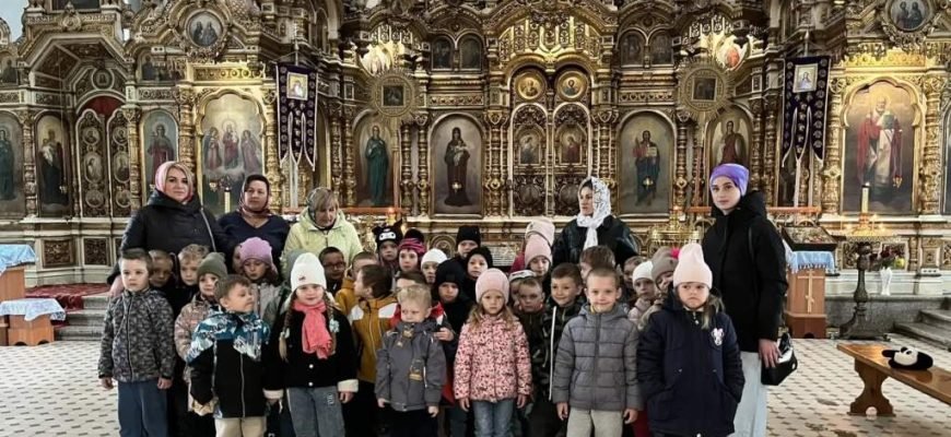 У дверей храма дошкольников радушно встретила педагог воскресной школы Зоя Александровна Артюшенко. Зоя Александровна рассказала ребятам об истории храма, иконах, житии святых, алтаре, Библии, царских вратах, ведущих к алтарю и многое другое. Показала, как правильно креститься. Ребята получили представление о форме одежды, приемлемой для посещения православного храма, познакомились с правилами поведения, узнали о том, что в храме необходимо соблюдать тишину, дисциплину и порядок, а к святыням нужно относиться с чувством благоговения.
