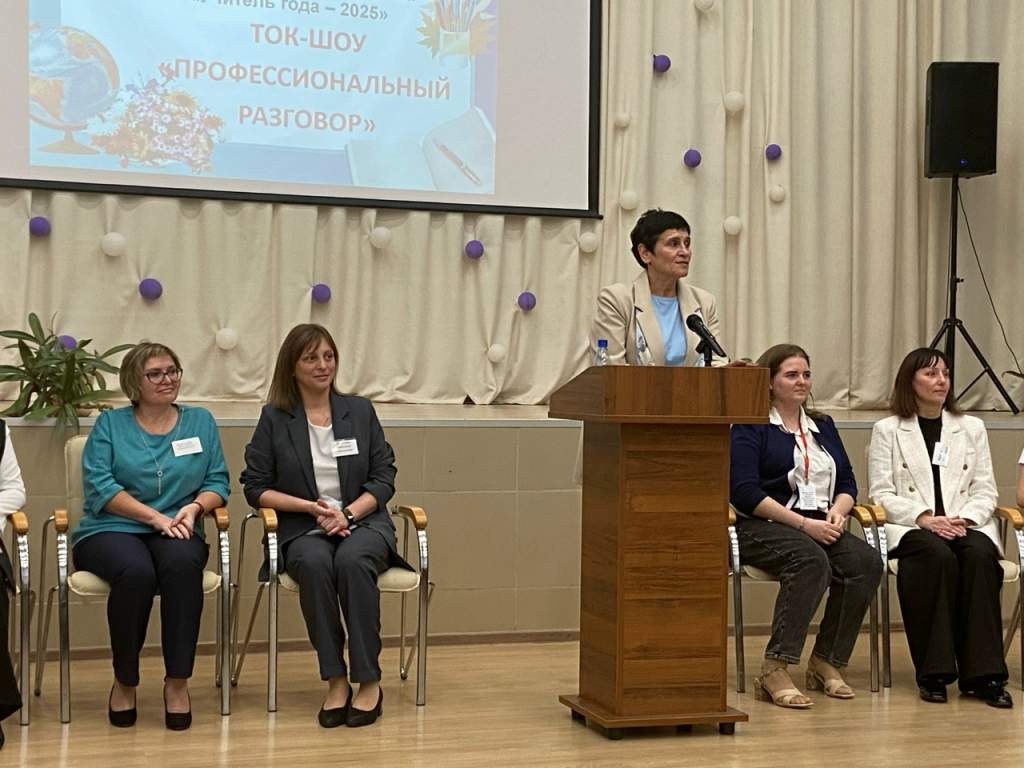 В актовом зале школы №18 г. Донецка в рамках городского конкурса «Учитель года-2025» проведено заключительное конкурсное испытание – ток-шоу “Профессиональный разговор”.