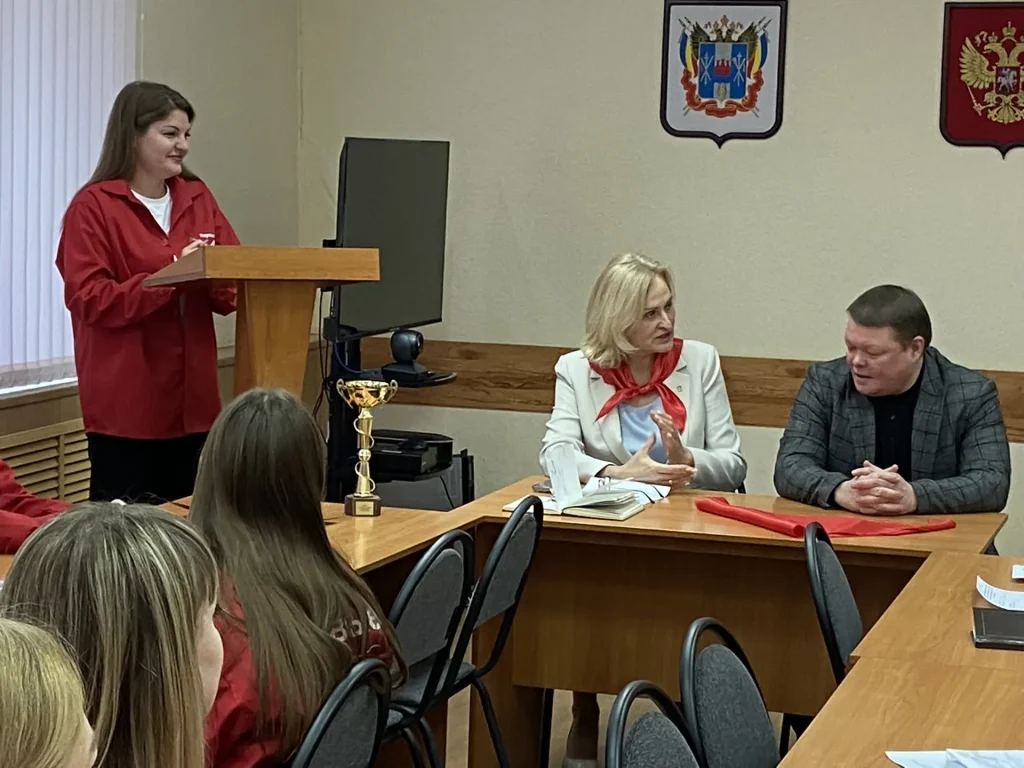 Участники заседания наметили векторы развития Движения и договорились о сотрудничестве. В меропрятии приняли участие Иванова Олеся, СОШ 4 – Председатель детского местного Совета, победитель Региональной премии “Первый-на-Дону” и Муравьева София, СОШ 18 – Заместитель председателя детского местного Совета, руководитель направления Дипломатия и международные отношения “Умей дружить”.