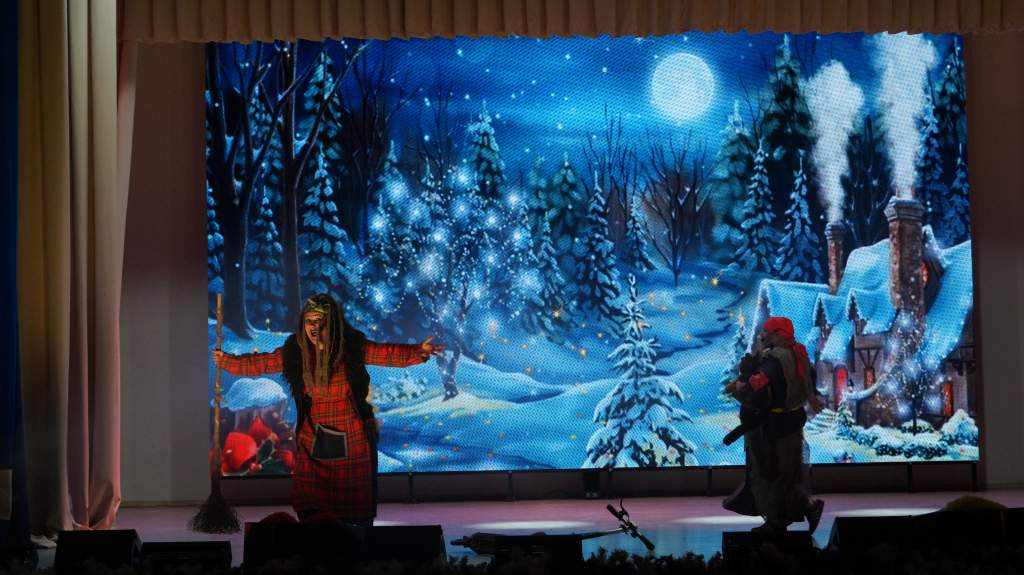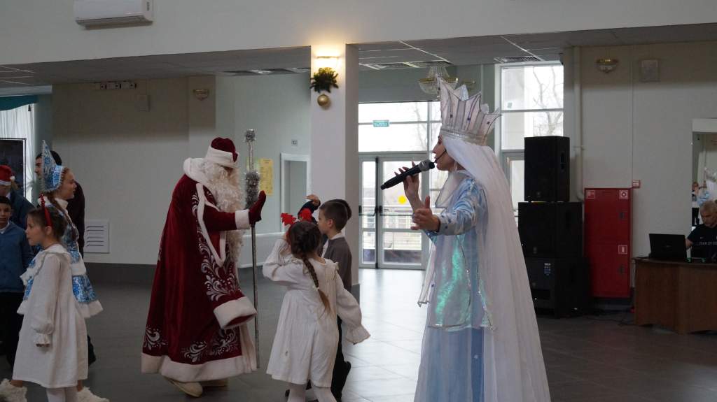Представление было ярким и запонающимся! Артисты ГДК “Шахтер” подарили детворе настоящую сказку, веру в Деда Мороза, Снегурочку и чудеса. Здесь были аж две Бабы Яги, разбойники с атаманшей, добрая Белая Пурга и злая Черная Пурга. Добро (как и пожено) победило, все вместе играли и веселились. Праздник получился!