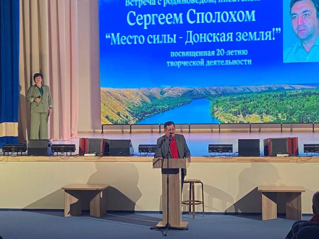 Имя Сергея Сполоха (Калинина) в нашем городе известно каждому человеку. Это писатель, краевед или родиновед, как он сам себя называет. Без него не было бы такой подробной летописи истории станицы Гундоровской, не знали бы мы многих интересных исторических фактов, не смогли бы так подробно и детально изучить историю многих казачьих династий. Вот уже двадцать лет Сергей Александрович творит историю нашей малой Родины, этому и было посвящено мероприятие, которое очень душевно провела Ирина Пахомова. В зале присутствовали читатели и почитатели Сергея Сполоха, те, кто также трепетно любит наш Донской край.