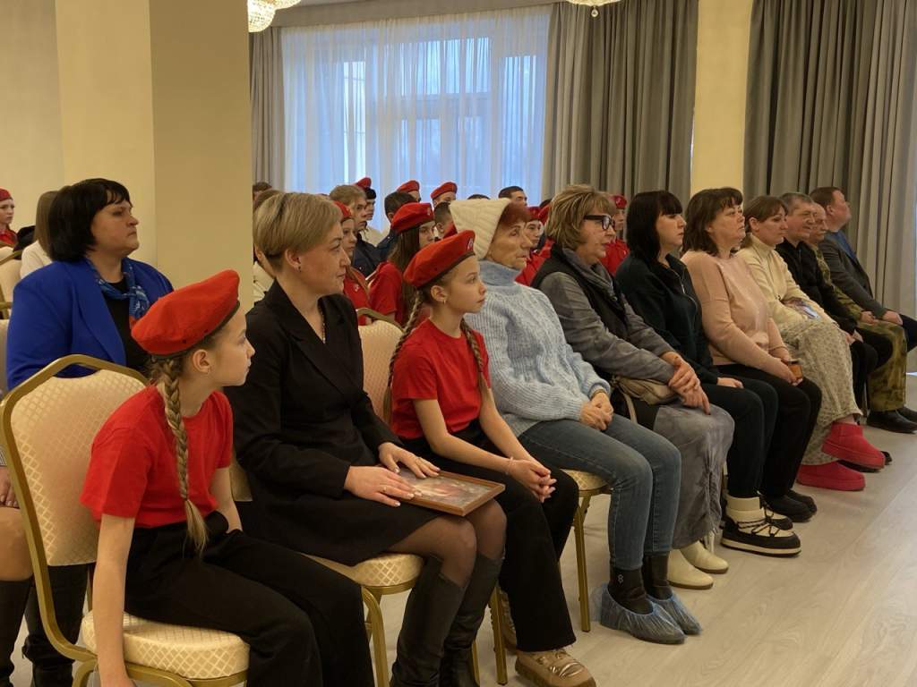 В зале присутствовали глава Донецка Роман Кураев, его первый заместитель Оксана Забабурина, заместитель военного комиссара городов Каменска-Шахтинского и Донецка, Каменского района Ростовской области Вячеслав Шмелев, социальный координатор фонда “Защитники Отечества” Елена Коробейникова, а также школьники и педагоги, пришедшие отдать дань уважения.