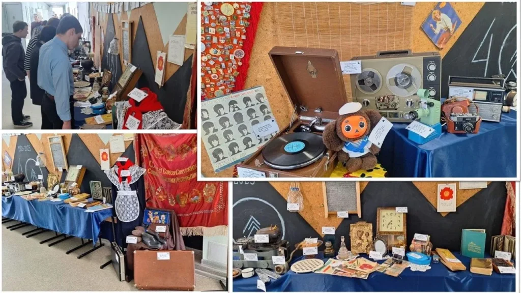 Из года в год вещи устаревают, и люди забывают об их назначении. На смену старым приходят новые, более удобные. Тем не менее мир старинных вещей особенный. И чем старше вещь, тем богаче её история. В экспозиции школьной выставки были представлены предметы XIX–XX веков. Организаторы проявили творческий подход, проведя параллели между экспонатами прошлого и их современными аналогами: фильмоскоп — домашний кинотеатр эпохи СССР, граммофон — музыкальный центр, авоська — шоппер СССР, телефон с диском — смартфон того времени.