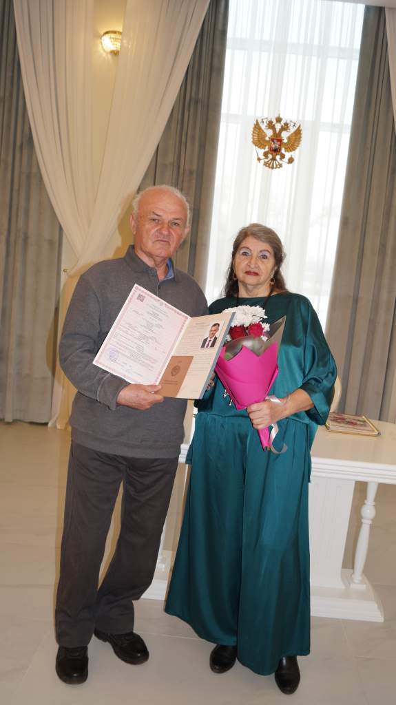 Сегодня, в честь их золотого юбилея, семейную пару поздравили в отделе ЗАГС Администрации Донецка. Руководитель ЗАГСа Оксана Алексеева вручила юбилярам приветственный адрес от Губернатора Ростовской области и от всего сердца пожелала им долгих и счастливых лет вместе. Куропатины оставили свою памятную запись в книге золотых юбиляров Донецка, став еще одной прекрасной страницей в истории нашего города.