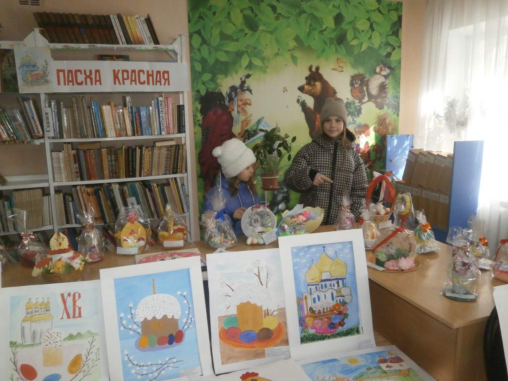 24 февраля по благословению благочинного Донецкого округа иерея Владимира Татаркина на базе клуба духовной культуры «Веков связующая нить», при детской библиотеке-филиале имени Гайдара, прошла городская выставка «Пасха Красная» детского и семейного творчества в номинациях ИЗО и прикладного творчества. Цель выставки – сохранение в семье православных традиций, развитие способностей обучающихся, поддержка талантливых детей ОВЗ и группы риска.