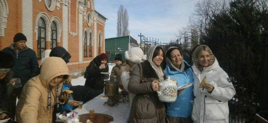В морозный день у самовара собрались на угощение прихожане по доброй традиции, сохранившейся в христианстве как последняя седьмица перед Великим постом, – дорогой творения каждым добра и милосердия.