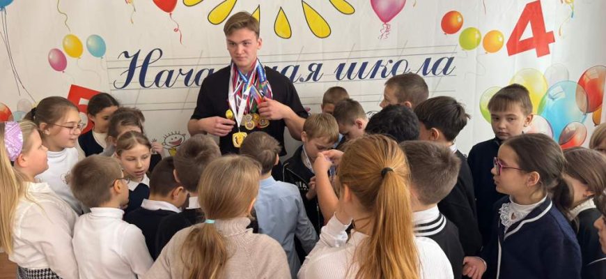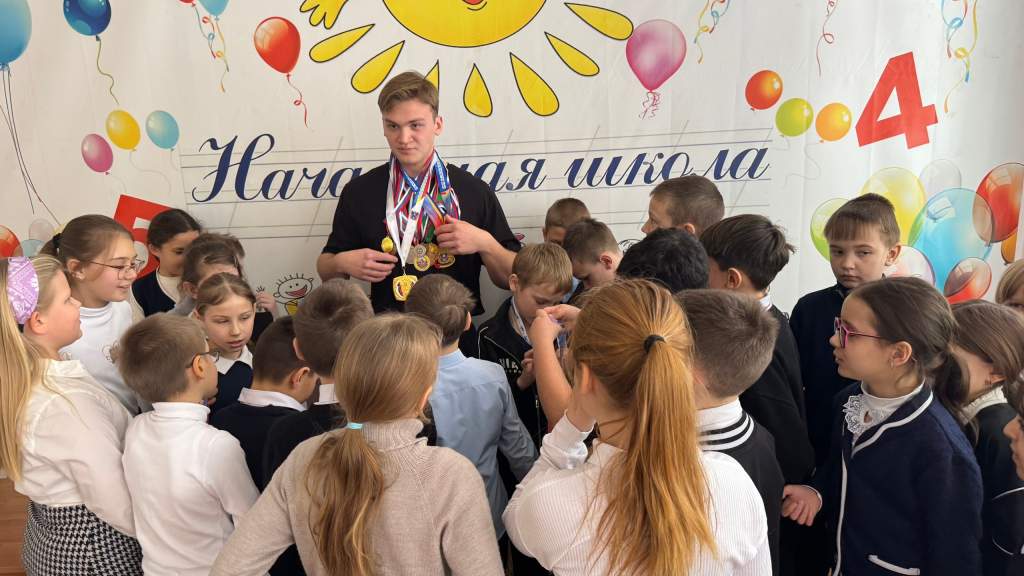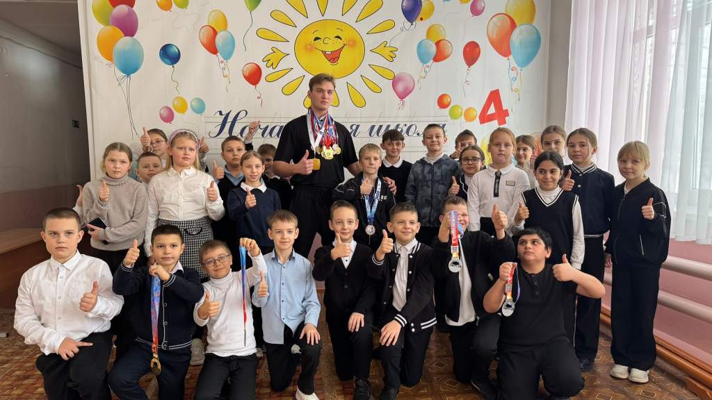 Гостем стал профессиональный спортсмен Пахомович Артём – студент 3 курса Донецкого института Южного Университета (ИУБиП) – Призер всероссийских соревнований по самбо, дзюдо и пауэрлифтингу, кандидат в мастера спорта по самбо, мастер спорта по пауэрспорту Национальной ассоциации пауэрлифтинга. Артем занимается спортом с 8 лет, в планах стать мастером спорта по самбо. Его путь в спорте — пример трудолюбия и воли к победе. Ребята с интересом слушали истории о тренировках, соревнованиях и преодолении трудностей.
