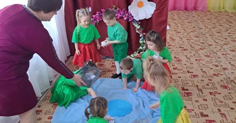 Воспитанники погрузились в лесную чащу, слушая пение птиц, шелест листьев… Прошли через множество испытаний: отгадывали загадки, помогали очищать лес и пруд от мусора, вспомнили какие бывают первоцветы и как нужно вести себя в лесу.