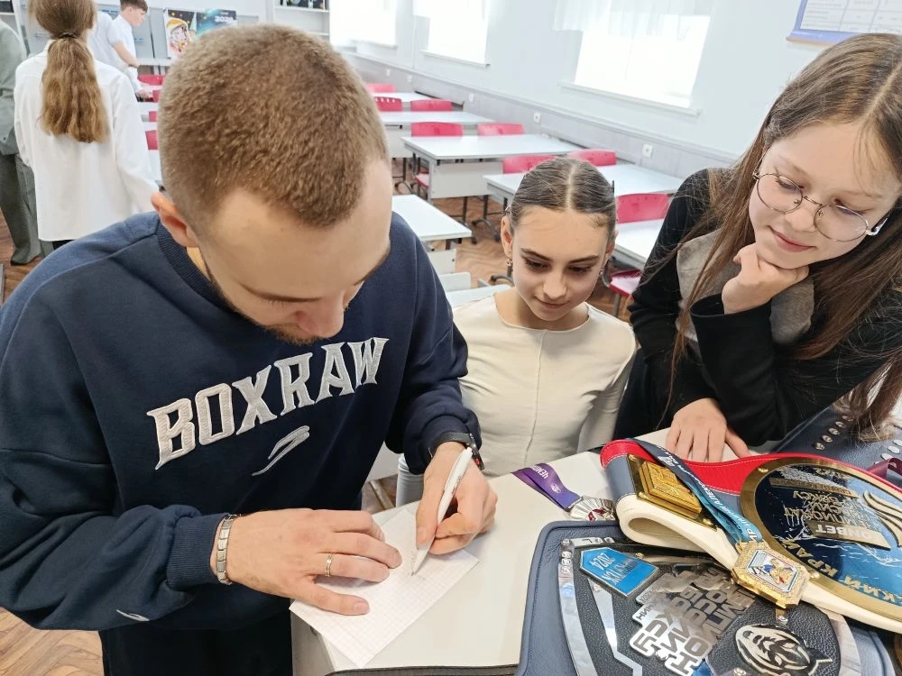 Завершением встречи стала фотосессия. Каждый ученик смог запечатлеть памятный момент рядом с любимым спортсменом и забрать домой маленький сувенир — автограф чемпиона.