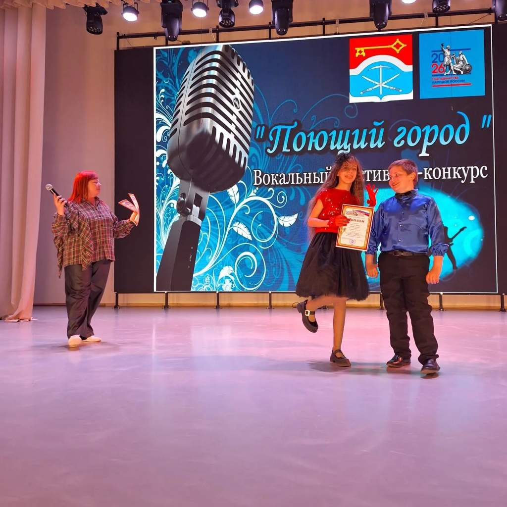 С большим энтузиазмом и творческим подъемом 15 апреля 2026 года юные таланты из группы “Ступени” выступили на сцене городского фестиваля вокального творчества детей и юношества “Поющий город-2026”.